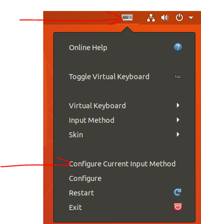 - 登陆后在右上角出现一个键盘标志,点击进入,选择Configure Current Input Method