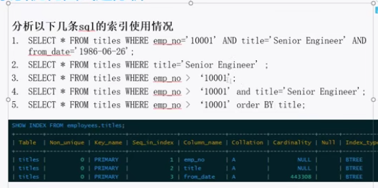 总共建立了三个索引,是联合索引,分别为emp_no,title,from_date